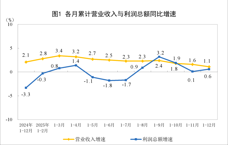 各月累計(jì)營(yíng)業(yè)收入與利潤(rùn)總額同比增速。(國(guó)家統(tǒng)計(jì)局/圖)