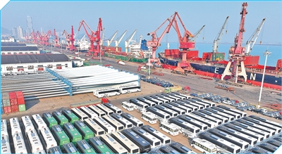 江蘇連云港,連云港港東方港務(wù)分公司碼頭,大批車輛等待裝船外運。 王 春攝(影像中國) |