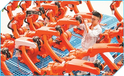 浙江臺州,一家機(jī)器人企業(yè)生產(chǎn)車間,工人在進(jìn)行機(jī)器人組裝作業(yè)。 章勇濤攝(影像中國) |