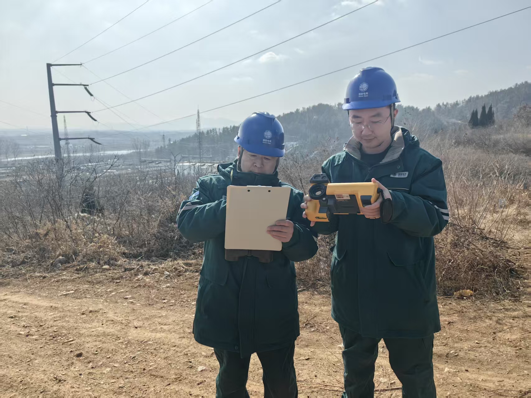 除了站內(nèi)設(shè)備,外部供電線路的安全同樣關(guān)鍵。220千伏黃陌線和崖牽線是陌鐵牽引變電所的重要保障電源,也是連接芝罘區(qū)和萊山區(qū)的重要電源點(diǎn),對春節(jié)期間鐵路安全運(yùn)行和市區(qū)可靠供電至關(guān)重要。在福山區(qū)回里220千伏黃陌線和崖牽線輸電線路現(xiàn)場,國網(wǎng)煙臺供電公司兩名輸電運(yùn)檢人員對輸電桿塔設(shè)備進(jìn)行巡視檢查,通過望遠(yuǎn)鏡檢查線路本體設(shè)備,測量導(dǎo)線對地、對建筑物、對樹木等各類交跨距離,檢查線路通道內(nèi)的違章建筑及是否存在外力破壞施工,并采用紅外測溫儀對耐張線夾等導(dǎo)線連接點(diǎn)進(jìn)行溫度監(jiān)測,詳細(xì)記錄設(shè)備運(yùn)行情況。