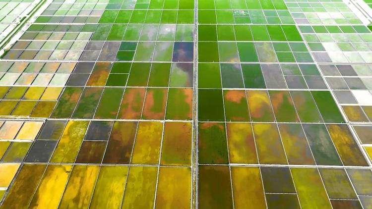 當(dāng)?shù)谝豢|晨光刺破渤海灣的薄霧,山東的濱州、濰坊等地的萬畝鹽田,如同被打翻的調(diào)色盤,在天地間鋪展開來。這里是山東省原鹽主產(chǎn)區(qū),鹽田如棋盤鋪展近一千平方公里,每一方都鐫刻著山東人向海而生的智慧密碼。