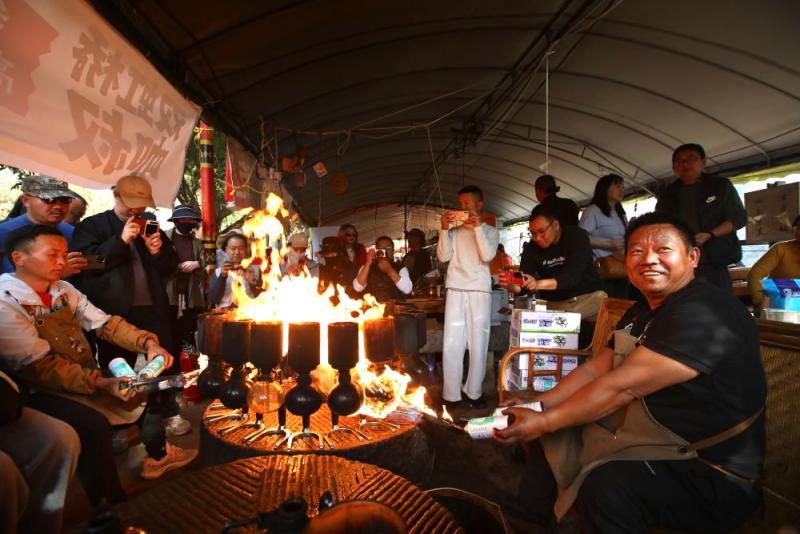 2026年2月1日,云南省保山市隆陽區(qū)芒寬鄉(xiāng)一家咖啡店主理人在為游客制作火燒咖啡。新華社發(fā)(范南丹 攝)
