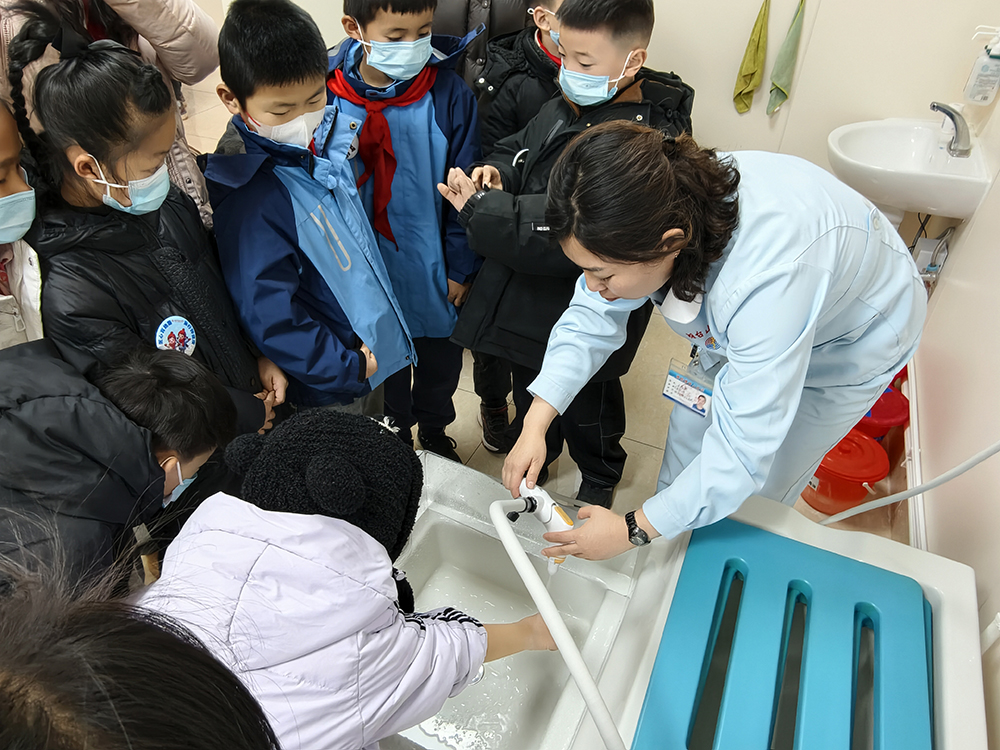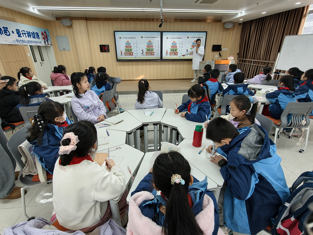 活動當(dāng)天,孩子們在醫(yī)護(hù)人員的引導(dǎo)下,依次參與了膳食寶塔科普、疾病防控學(xué)習(xí)、急救技能特訓(xùn)、醫(yī)學(xué)場景探秘、中醫(yī)文化體驗(yàn)、血液檢測等多個特色環(huán)節(jié)。在“營養(yǎng)食力派”分享中,臨床營養(yǎng)科醫(yī)生以2022版《中國居民膳食指南》為藍(lán)本,用趣味講解讓孩子們掌握食物多樣、吃動平衡、少油少鹽少糖等八大飲食準(zhǔn)則,學(xué)會通過認(rèn)識食品標(biāo)簽規(guī)避高鹽高糖陷阱;“健康小衛(wèi)士”課堂上,醫(yī)護(hù)人員以“健康小超人對戰(zhàn)病毒小怪獸”的擬人化形式,講解流感、手足口病等傳染病的傳播途徑,手把手教學(xué)七步洗手法、咳嗽禮儀等實(shí)用防護(hù)技能,讓孩子帶動全家養(yǎng)成健康習(xí)慣。