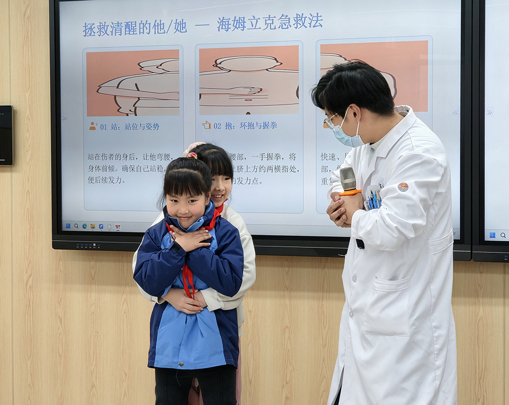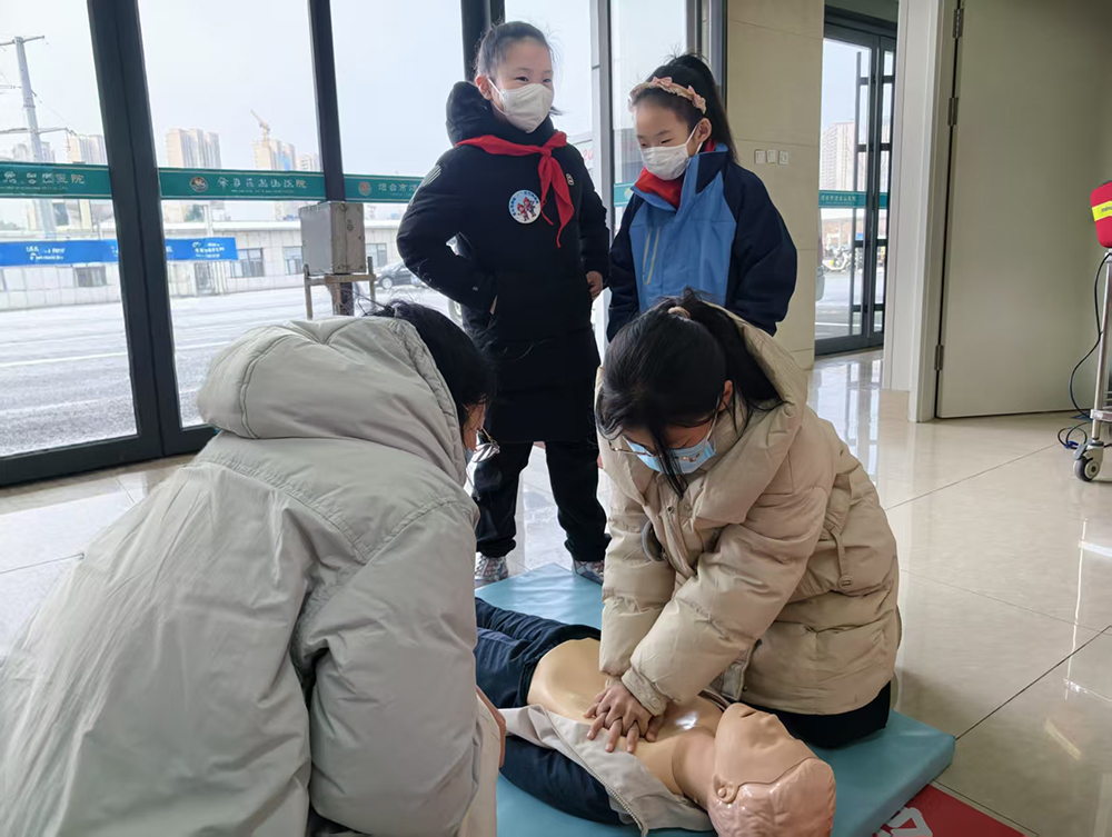 “少年急診特訓(xùn)”成為本次冬令營的熱門環(huán)節(jié),孩子們認(rèn)真學(xué)習(xí)撥打120的正確方式、海姆立克急救法和心肺復(fù)蘇操作技巧,在模擬道具上反復(fù)練習(xí),并初步掌握胸外按壓的力度和頻率。隨后,孩子們走進(jìn)救護(hù)車、搶救室和狂犬病暴露預(yù)防處置門診,近距離觀察急救器械配備,學(xué)習(xí)動物致傷后的傷口處理和疫苗接種知識,將實(shí)用急救技能一應(yīng)收入囊中。