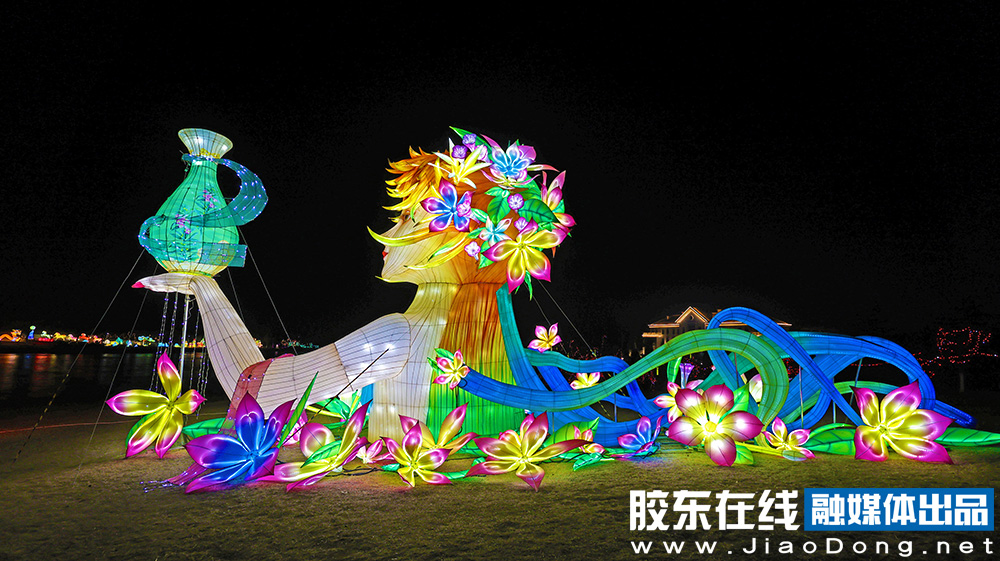 9、蓬萊仙子燈組:仙氣氛圍拉滿打卡點,12米長×7.5米,帶眼睛傳動、花瓶流水動態(tài)特效,出片極具詩意。