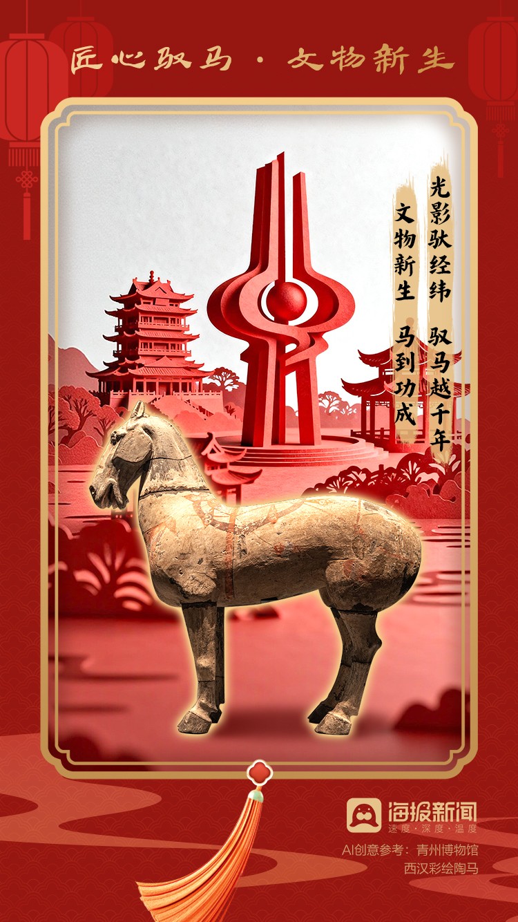 以“馬”為創(chuàng)意紐帶,融合山東孔廟儒風(fēng)、泰山巍峨、黃河奔涌、文物煥彩、海洋浩瀚等元素,推出系列新春海報,盡顯齊魯文化賡續(xù)、山河錦繡、古韻新生、藍(lán)海騰飛、鄉(xiāng)野煥活、科創(chuàng)領(lǐng)航之盛景。