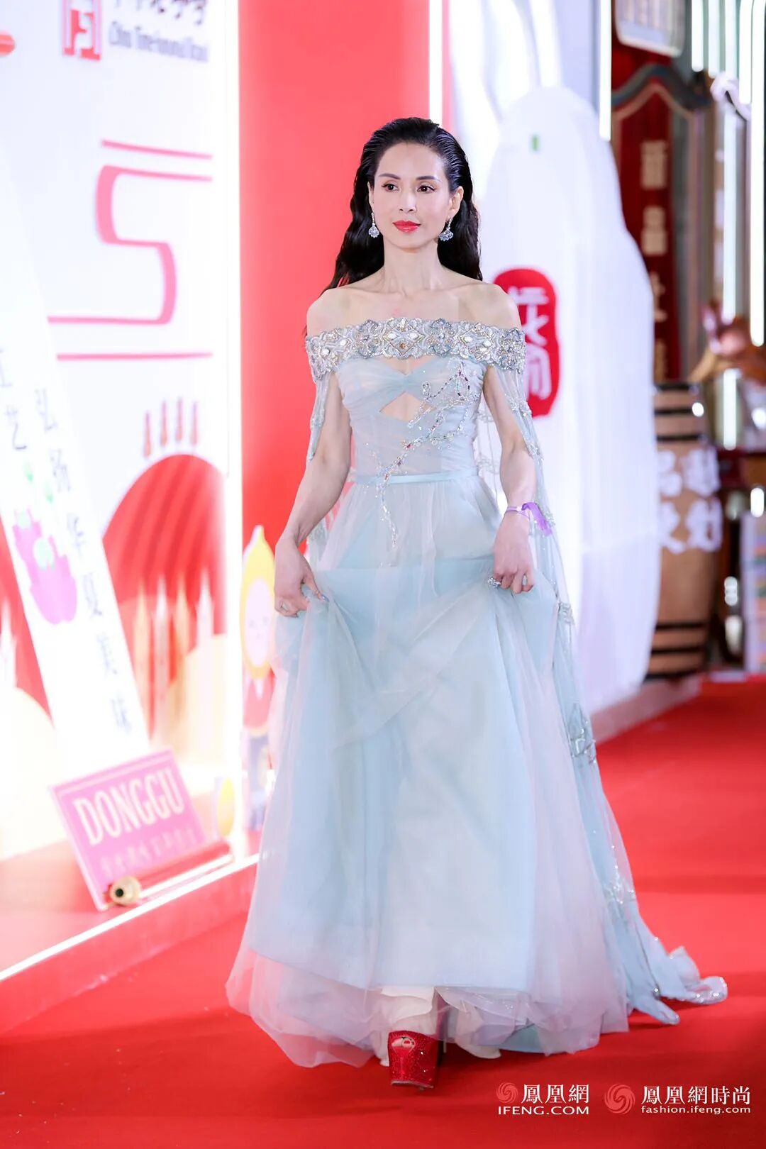 年度致敬明星惠英紅,一身閃鉆披肩長裙,成為當晚的氣場擔當。