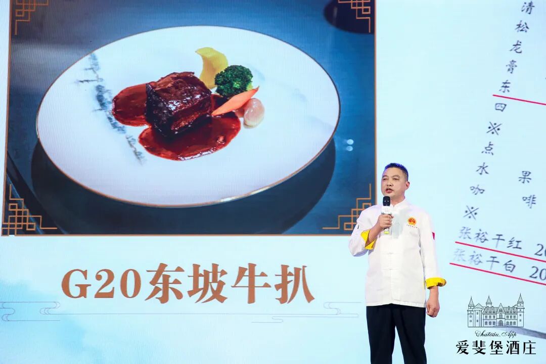 晚宴上,G20杭州峰會(huì)歡迎晚宴菜肴設(shè)計(jì)者、浙江西子賓館行政總廚朱啟金大師親自擔(dān)綱,為貴賓們準(zhǔn)備了松茸雞湯、東坡牛扒、龍井蝦仁、松子鱖魚等經(jīng)典杭幫菜,并與大家分享愛斐堡與國宴菜的巧妙搭配。
