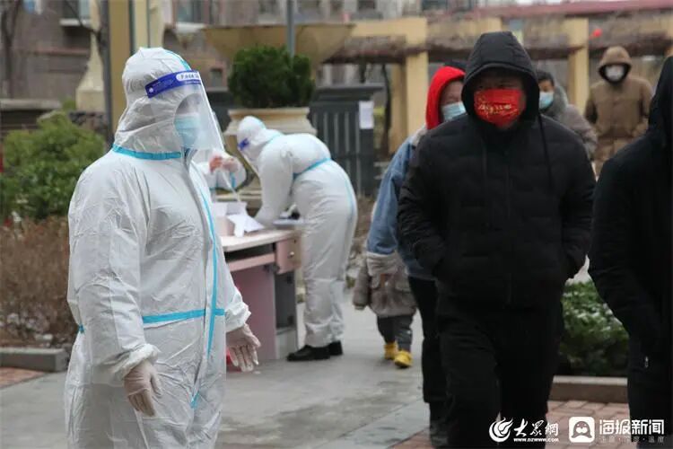 記者在檢測(cè)現(xiàn)場(chǎng)注意到,邢虹為居民采集信息的速度很快,雖然天氣寒冷,但邢虹和同事們忙不一會(huì),身上的衣服已經(jīng)被汗水浸濕,額頭的汗水隨著發(fā)絲滴落。“今天的任務(wù)特別艱巨,但是大家都在堅(jiān)持著,只有排除了風(fēng)險(xiǎn),社區(qū)才安全,福山才安全,大家才能放心地出門(mén)!毙虾绺嬖V記者。